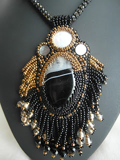kolorach czarnym i bronze. Dla równowagi uplotłam sznur z dodatkami
